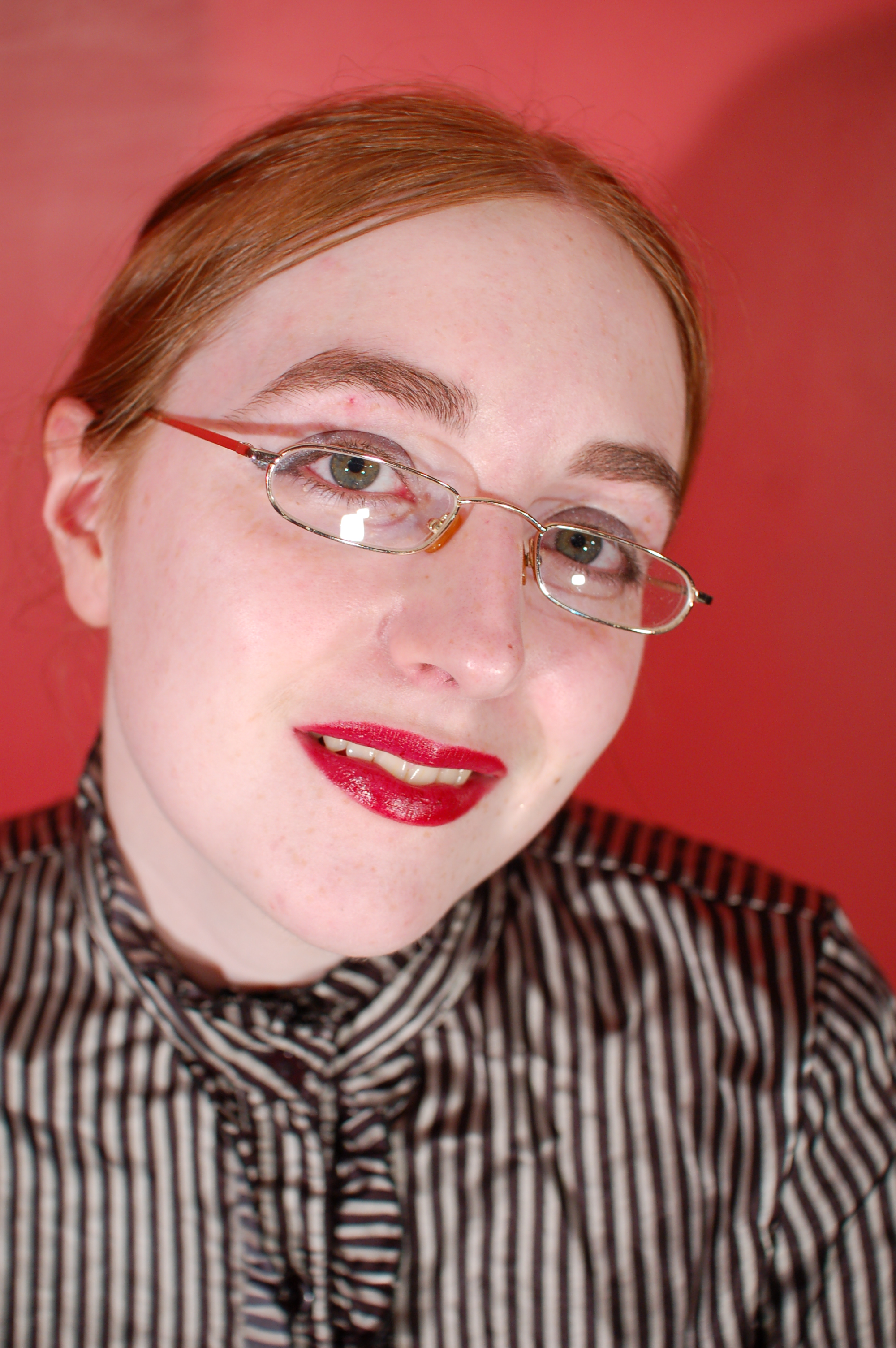 She pours custard, then milk, then syrup, into her skirt, inside her stockings, inside and over her blouse, all over her shoes, and by the end of her very careful, deliberate, and total gunging, she is completely saturated in mess from head to toe. Her beautiful long red hair does not escape the treatment either, and she finishes with a honey facial.