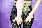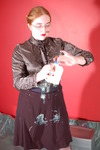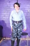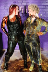 Dressed in skin tight black PVC jeans, black lace-up PVC top, and huge Goth boots, Chastity has lots of custard thrown over herself from off camera, and gradually gets completely covered. Once she's had a fair few throws she pours more over and into her clothes, and eventually gives herself a total custard shampoo and facial too.