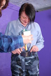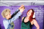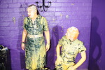 The classic approach to two-person gunging, as pioneered by the Japanese experts. Lady Jasmine and Nurse Wendy-Household play Scisors, Paper, Stone with each other, the winner of each bout getting to apply a little gunge to the loser. Well, at least until Nurse W-H proves to be uncommonly good at the game, wherupon it's decided that if anyone gets more than four-in-a-row, they automatically lose and the other person gets to gunge them!