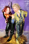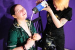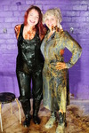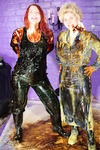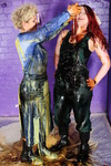 Lots of laughs, lots of smiles, and two very willing women completely covering each other in messy slop. Both have their outfits well filled and then covered, heads and hair get totally messed up too, Evelyne's short hair and Rose's luxurious flowing locks get well coated and shampooed with goo.