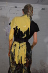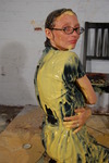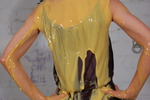 She goes on to thorougly drench her entire outfit in yellow mess, finally relaxing only when every last inch has been thoroughly slimed.