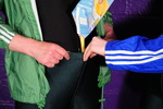 Our judges this time are Lucia and Charity, and they dress nearly identically in green disco pants over dance leotards, with Hunter wellies, and lightweight Adidas zip jackets. Lucia's leotard is black and her jacket green, Charity's leotard is blue and so is her jacket.
