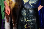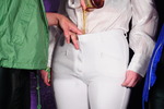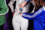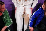 They take interstingly different approaches. Lucia choses to put quite a lot of her very sexy shiny black outfit back on before she starts to get messy. Charity on the other hand chose to have a fair bit of custard poured into her swimsuit before she starts putting her tracksuit back on. And Abigail enjoys having her panties nicely filled before she pulls her disco pants back on, with interesting effects when she then sits down again.
